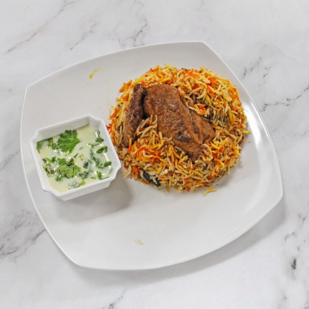 Overnight-marinated chicken cooked to perfection with premium basmati rice on dum — deeply aromatic, richly spiced, and irresistibly satisfying.